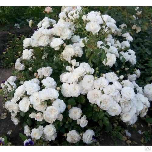 Небольшой кустик полностью покрыт крупными соцветиями белоснежных цветков, форма которых варьируется по мере расцветания от глубоко чашевидных до розетковидных. Легкий фиалковый аромат. Листья глянцевые, тёмно зелёного цвета.