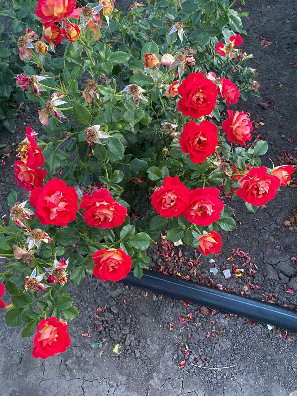 Ярко-красные цветки с темно-желтым реверсом, умеренно-махровые (20-28 лепестков), в полу-роспуске классической формы, затем — свободной чашевидной, на побегах одиночные. Аромат чая и яблока. Куст хорошо разветвленный, с глянцевой, средне-зеленой листвой, шипов очень мало. Цветение практически непрерывное. Среднее кол-во лепестков: 25