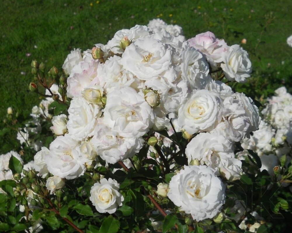 Мелкие, белые цветки с глянцевой поверхностью лепестков появляются в многочисленных соцветиях из кремово-желтых бутонов. Аромат мягкий. Непрерывное цветение. Куст густой, компактный, вертикальный, полу-глянцевая, средне-зеленая листва. Кол-во цветков на стебле: 5-10. Среднее кол-во лепестков: 25. Практически не болеет.