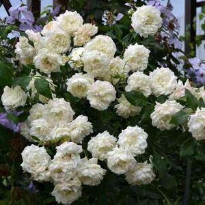 Плетистая форма флорибунды Мона Лиза. Цветки крупные, махровые (до 30 лепестков), правильной формы, цвета слоновой кости, очень устойчивые. Цветение повторное в течение сезона. Шипов мало. Среднее кол-во лепестков: 30.