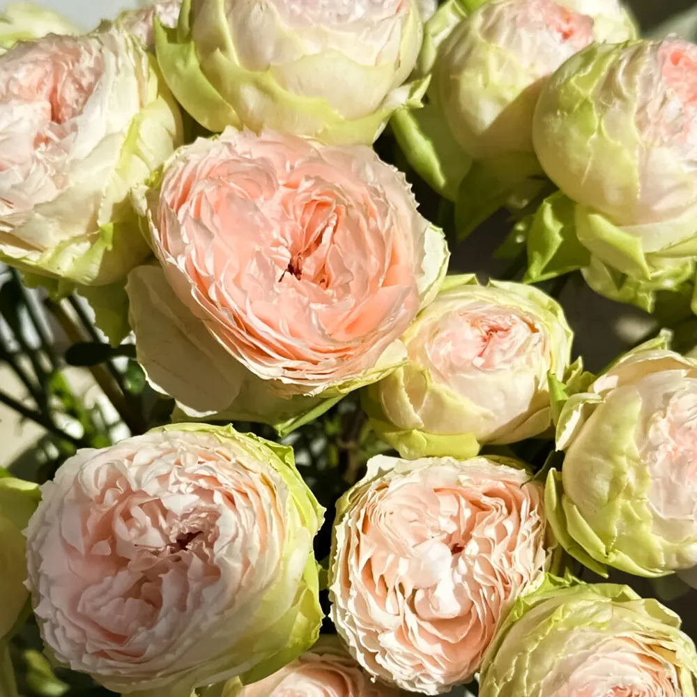 Пинки Пай имеет красивый и большой цветок английской садовой розы, цвет бутона меняется от тонкого кремового тона с розовым напылением в центре, до светло-зеленого на внешних лепестках. Идеальная свадебная роза для романтичных невест, именно поэтому данный сорт очень востребован у флористов. Компактная, аккуратная форма куста позволяет выращивать сорт Пинки Пай (Pinky Pie) в кашпо, для украшения балконов, летних веранд.